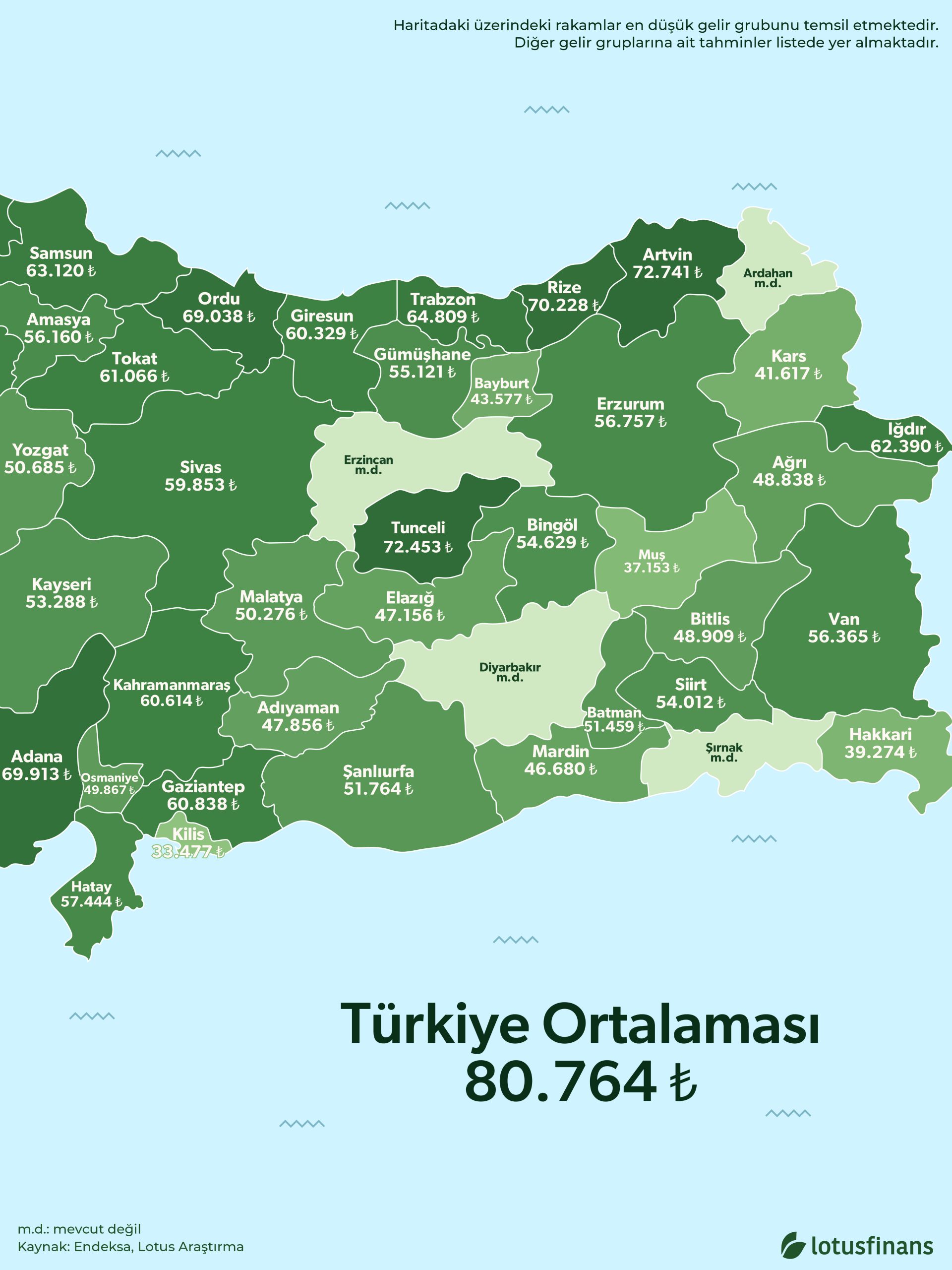 Yüksek eşiklerin öne çıktığı iller İstanbul, Muğla, Ankara, İzmir ve Antalya olurken; düşük eşiklerin görüldüğü iller Kilis, Muş, Hakkâri, Aksaray ve Kars olarak öne çıkıyor.