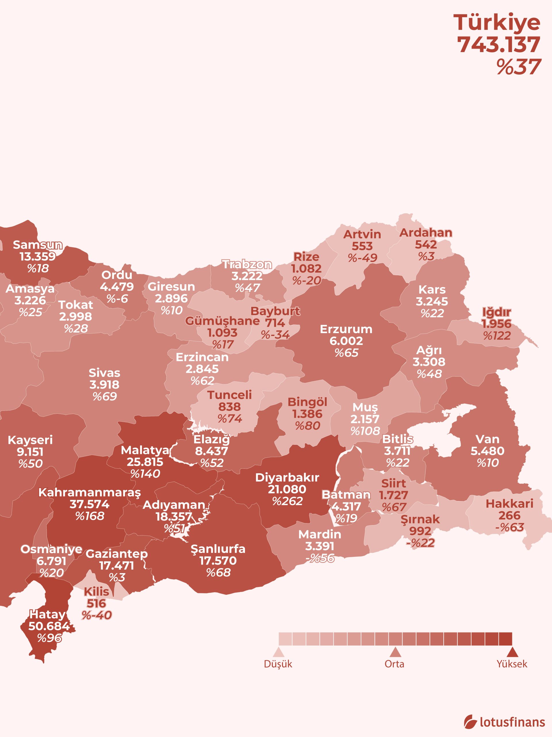 Artışın ana kaynağı deprem bölgesi: Bu 200 binlik ek ruhsatın 102 bini yalnızca deprem bölgesinde. Kamu öncülüğündeki yeniden inşa programları ve kentsel dönüşüm dosyaları, özellikle Kahramanmaraş, Hatay, Malatya ve Adıyaman’da ruhsat rakamlarını yukarı çekiyor.